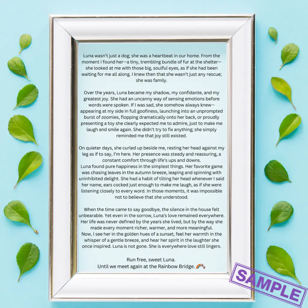 This page shares a collection of memorial writing samples created to honor life, love, and the bonds that endure beyond loss.